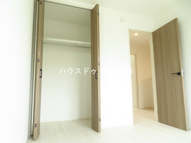 7.5帖洋室:大きめのクローゼットがついています。引き出しタイプの家具を入れれば、ハンガーにかけれない物もスッキリ収納できますね。