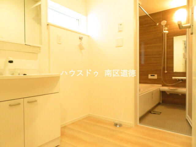 北面に横長の小窓が付いて光を取り入れるとこができる洗面所です。