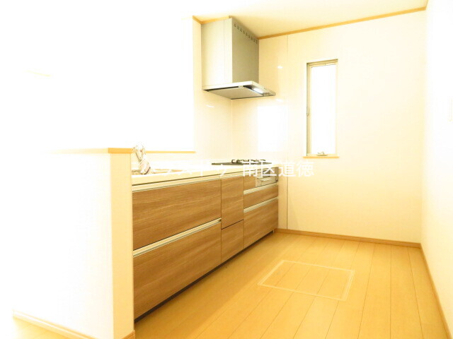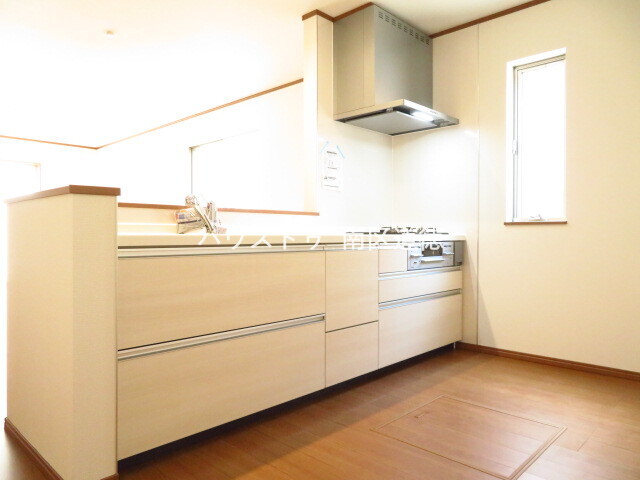 19.2帖の広々LDKスペースです。カウンターキッチンで、家族の団らんの中でお料理が楽しめます。
