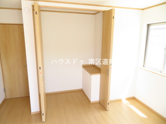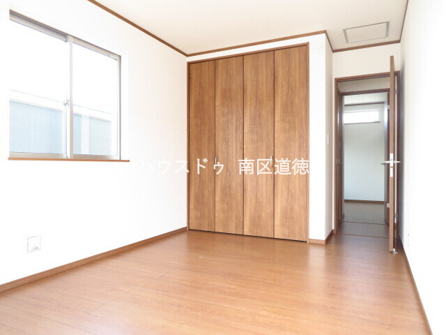 南西側6帖洋室:クローゼットの建具も木目であたたかみがあります。全居室にハンガーパイプ付きのクローゼットが完備されています
