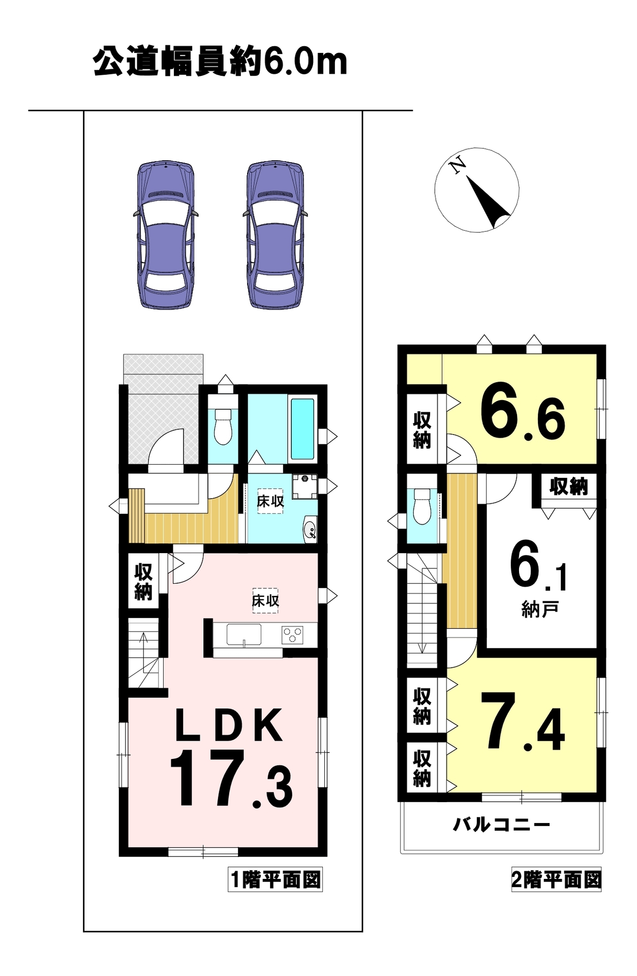 2LDK+S(納戸)の間取り、駐車は2台可能なお家。
