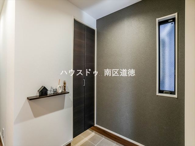 玄関を開けると、このような空間。正面の扉は、シューズインクローゼットへ繋がります。