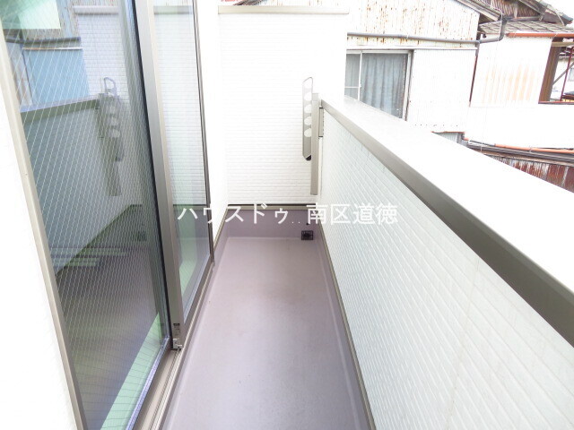 2階バルコニー:リビングから出入りできる南側バルコニーです。3階にも南バルコニーが付いていますので、お布団も干すことができます◎
