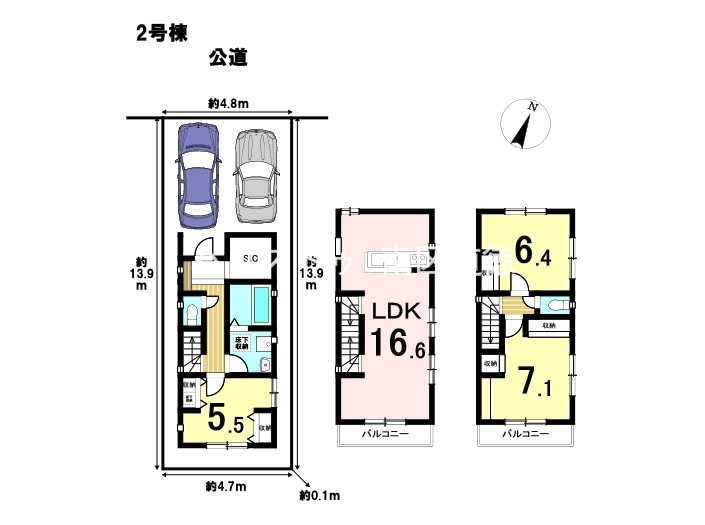 3LDKの間取り、駐車は2台可能な3階建てのお家です。SICが完備され、玄関周りがスッキリと保てます◎