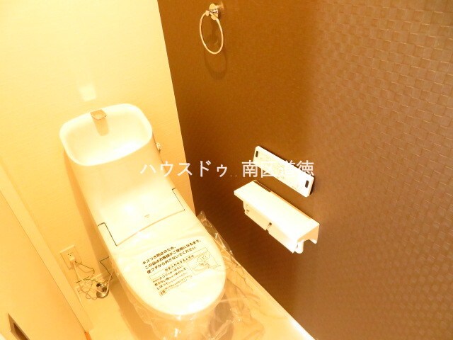 2階トイレ:個室もこだわりのあるデザインに♪収納棚や観葉植物を置くのも良いですね♪