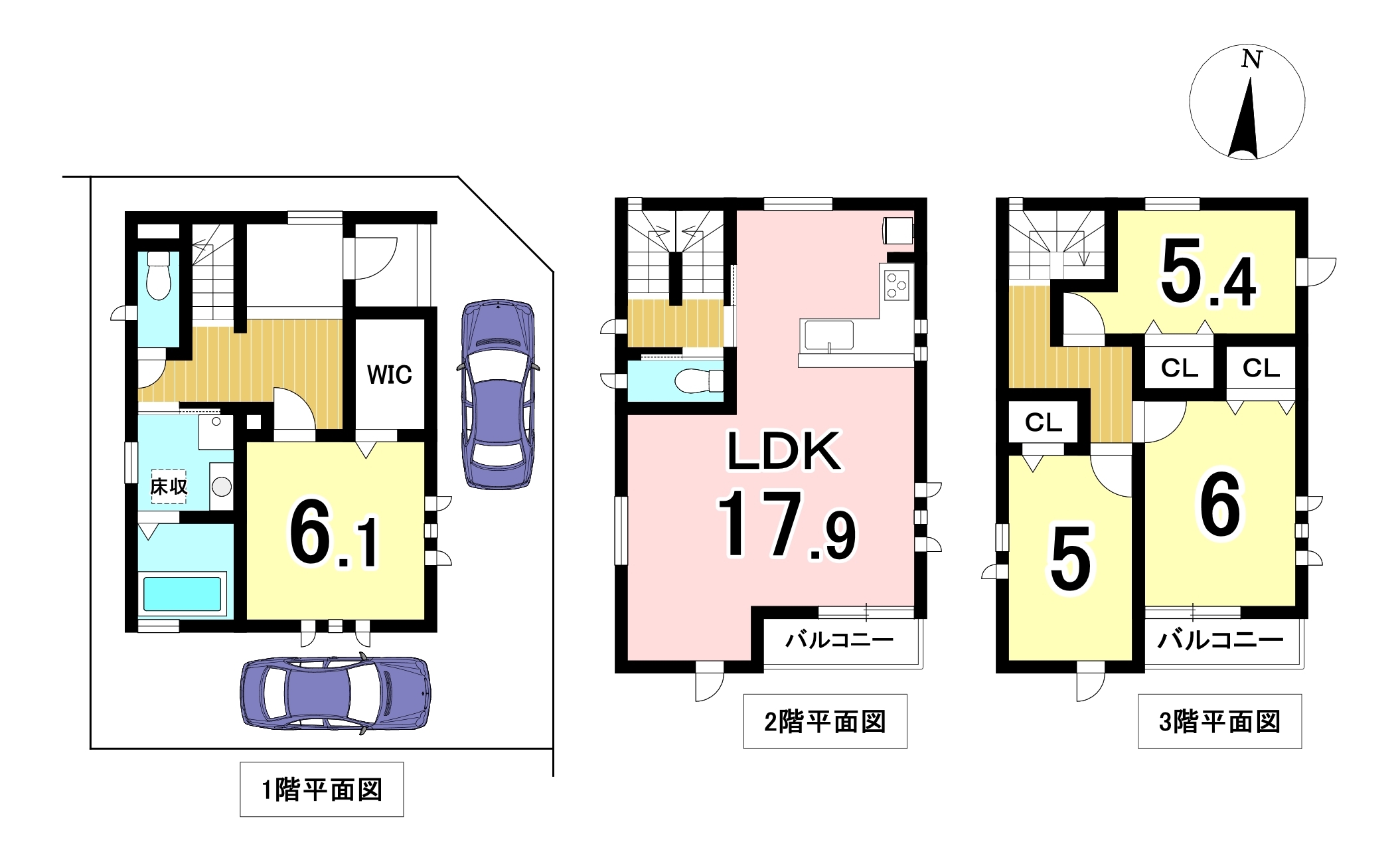 角地に建つ3階建ての住まい♪4LDKの間取り、駐車は2台可能です。