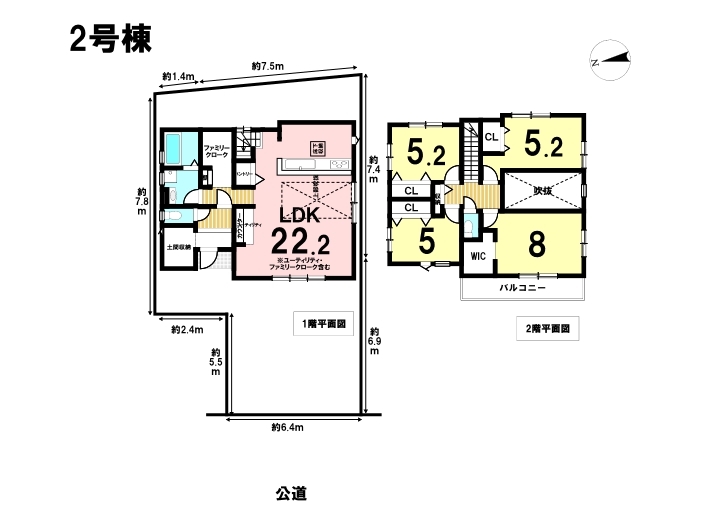 玄関に土間収納、1階廊下にファミリークローゼット、キッチンにパントリー、8帖洋室にはWICが完備!収納豊富な住まい♪