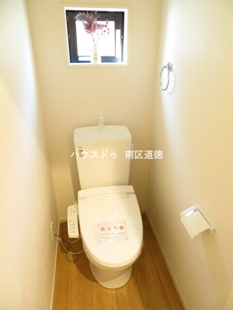 1階トイレ:玄関の正面に完備されています。小窓から優しい光が入ります。