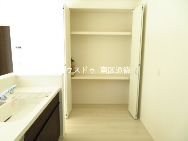 キッチン横には収納スペースがあり、ストック品などたくさん収納可能◎