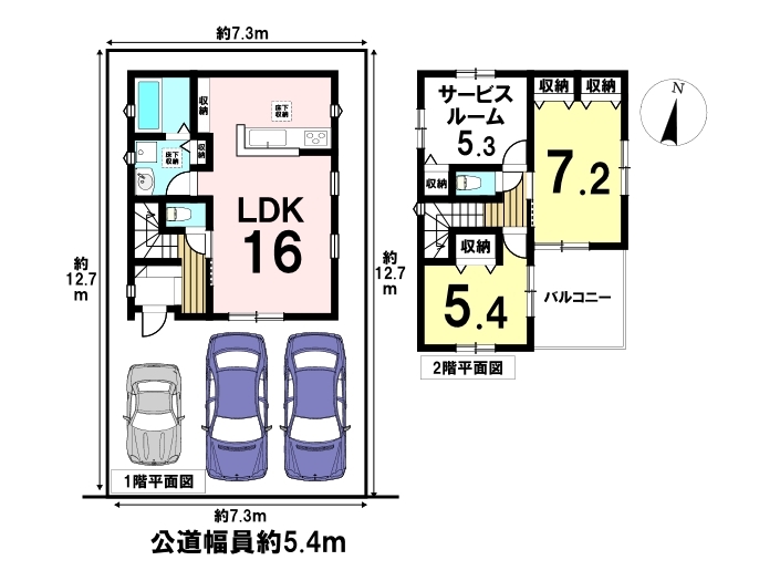 2LDK+S(納戸)の間取り、駐車は3台可能。