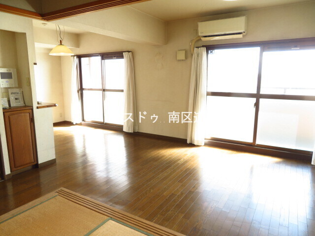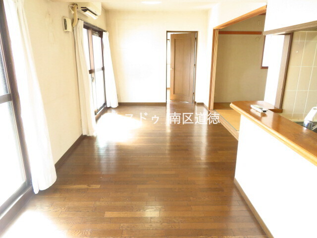 12帖のLDKスペースです。南向きの窓から陽射しが入り、採光・通風共に良好です。
