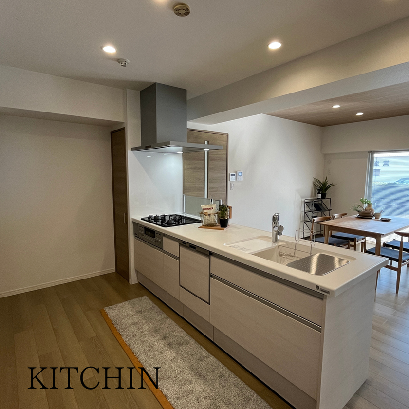 オープンキッチンでオシャレ空間♪食洗機が搭載!機能性も兼ね備えています!後ろの壁には小窓が付いています