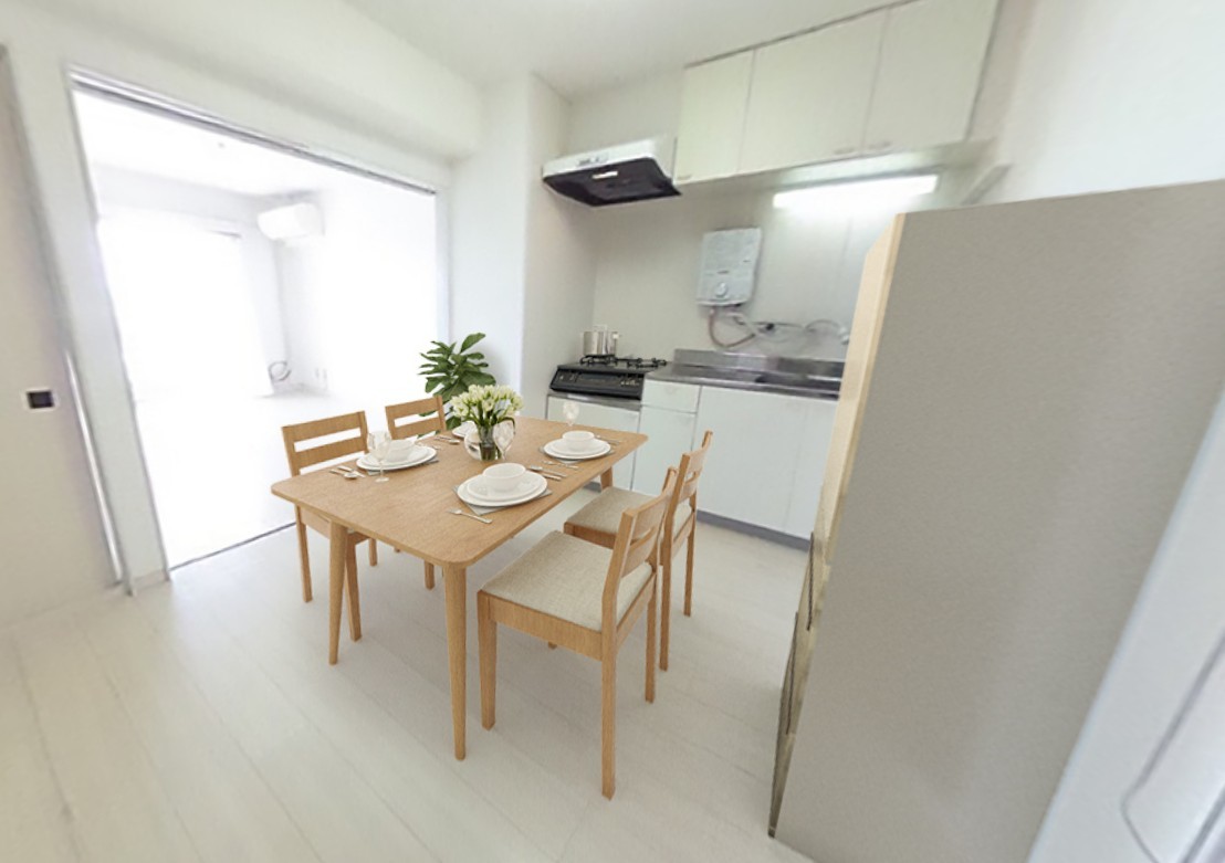 キッチンもスッキリとした印象の白色で、お部屋に統一感がある空間♪