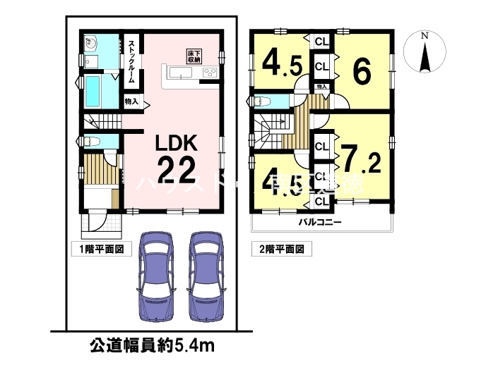 4LDKの間取り、ゆったり2台駐車可能な住まい♪