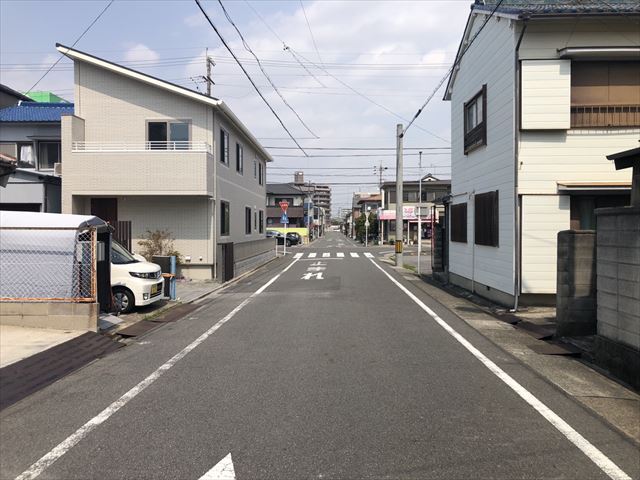 幅員約7.2mの前面道路です。普通車が余裕を持ってすれ違うことの出来る道幅です。もちろん、大型車も余裕を持って通行出来ます。