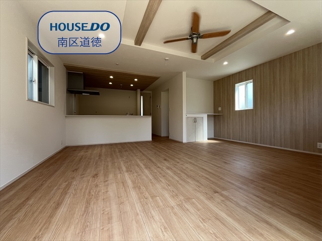 タタミコーナー付きの21帖の広々リビングには、折り上げ天井にシーリングファンが付いています♪