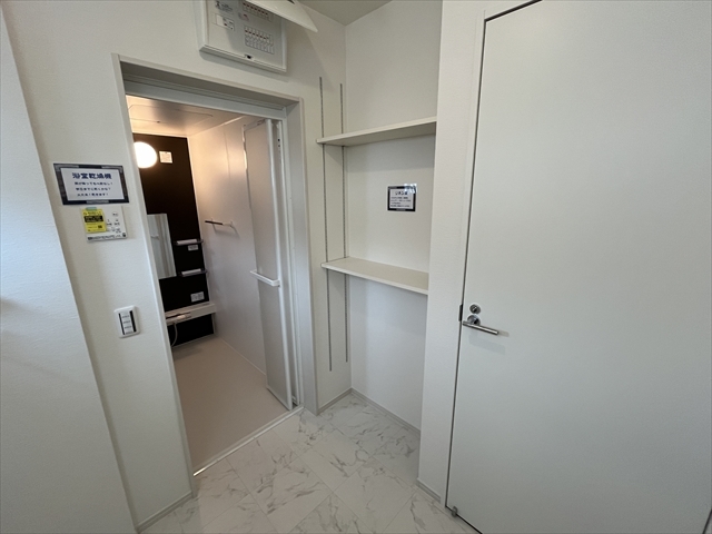 壁に備え付けられた棚が完備されています。小物やタオルなどを機能的に仕舞っていただけます♪
