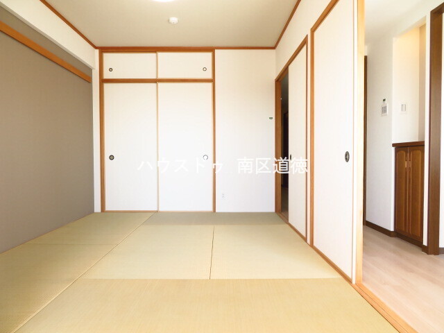 6.2帖和室:アクセントクロスで明るさもありながら落ち着きのある和室。