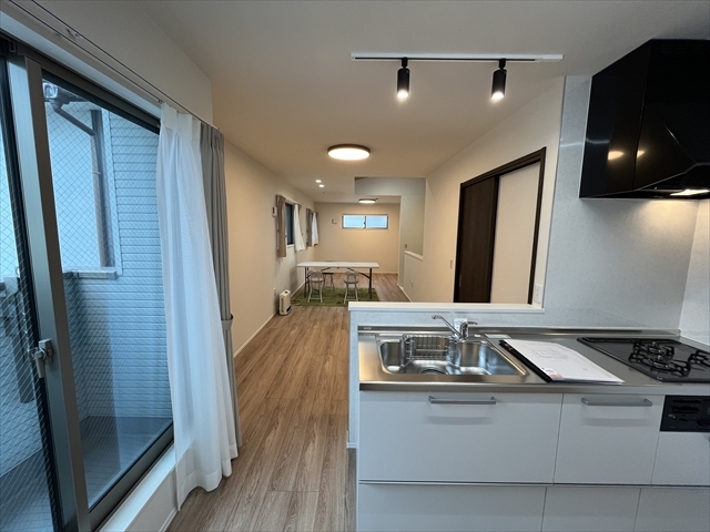 キッチン横には南向きのバルコニーがあり、明るい空間です。