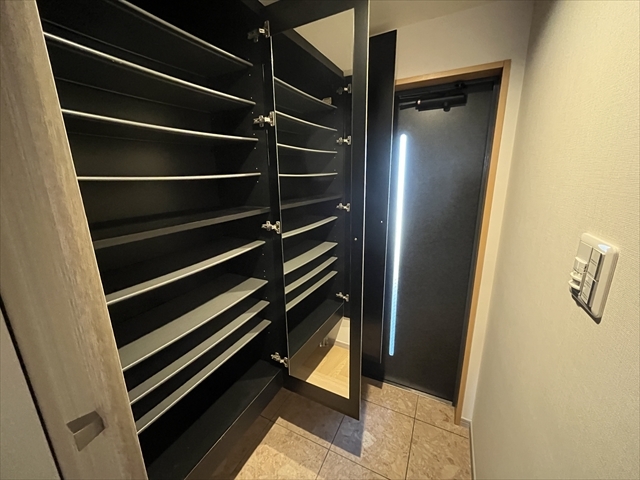 フロートタイプの玄関収納は、履いていた靴の一時置きに便利です!