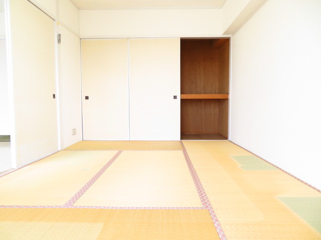 和室:リビングから出入りできる扉の横に、押入収納が完備されています。奥行きがあるので、衣装ケースや突っ張り棒を使って空間を有効活用できます!