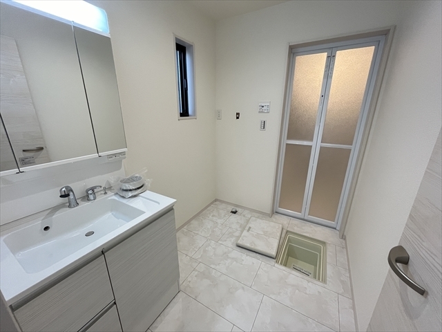 洗面所には床下収納が付いています。