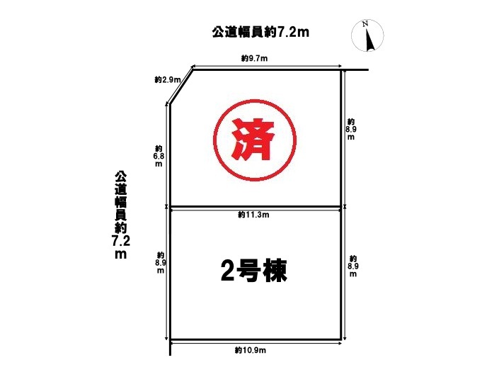 全2区画の全体写真です。名鉄常滑線/道徳駅まで徒歩約10分、市営バス「三条」停まで徒歩約4分と交通アクセス良好です。