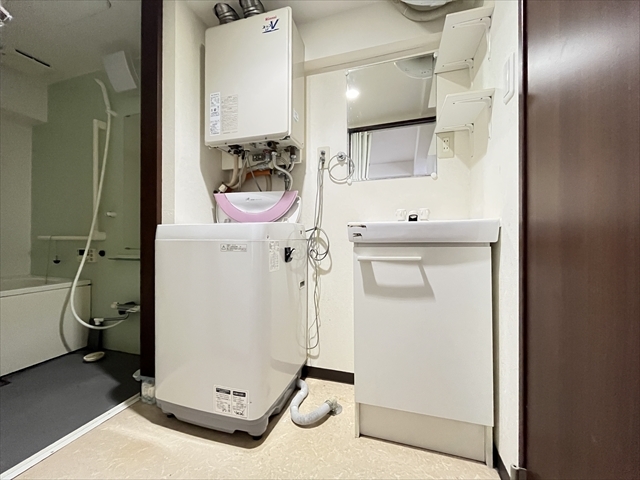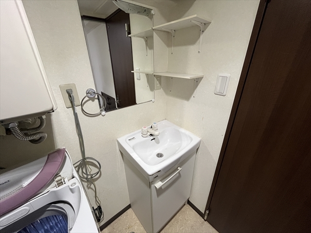 洗面所は、浴室とトイレの間にあります。洗面台横に洗濯機置き場も付いています。