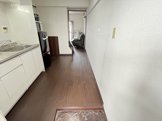玄関から見たダイニングキッチンです。スッキリとしたシンプルな空間となっています。