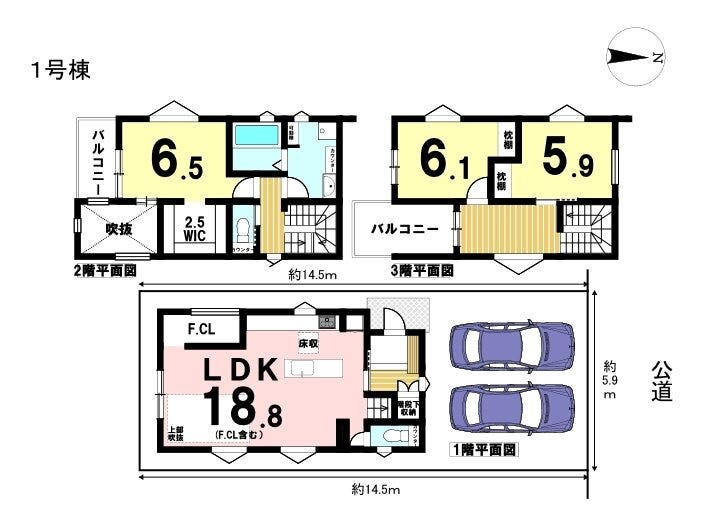 3LDKの間取り、駐車は2台可能な3階建てのお家です。