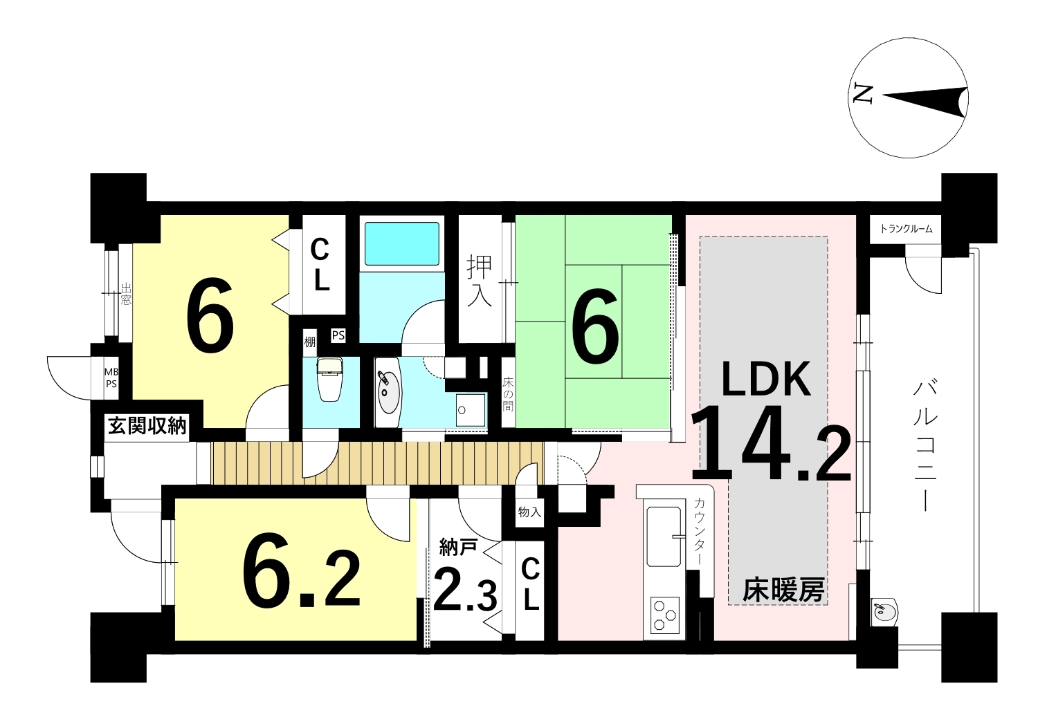 ◆全居室6帖以上でゆったりとお過ごしいただけます。