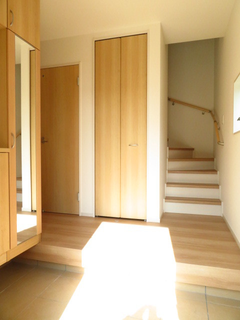 玄関収納に鏡が付いているので、お出かけ前の身だしなみはここでチェック出来ます。