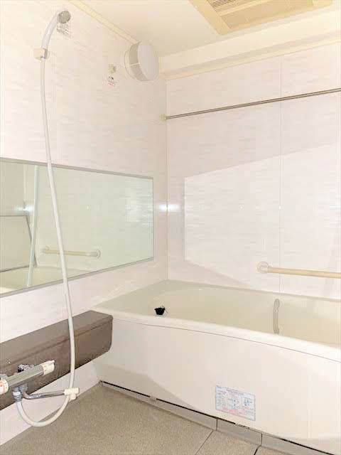 大きな鏡付きの浴室。浴室乾燥機が完備♪雨の日でも干す場所に困りません