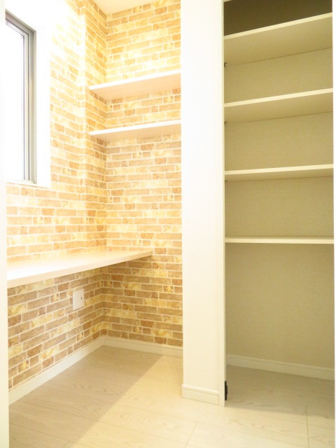パントリーとワークスペースがあります。家事スペースは奥様の憧れ。