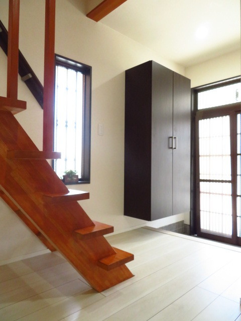 木のぬくもりを感じさせてくれる階段に、窓から光が差し込む爽やかな玄関。