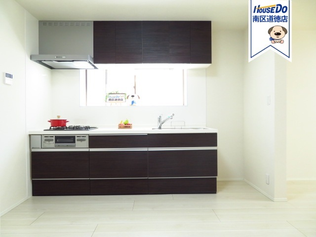 使い勝手が良く、木目の美しいシステムキッチン。