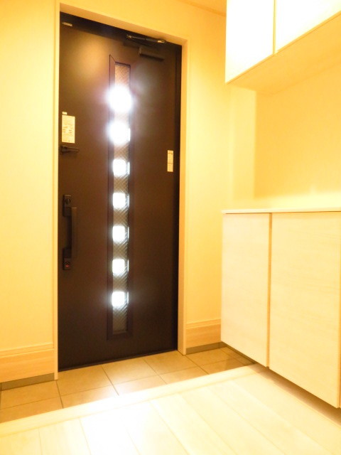玄関扉に小窓がついているので、室内に明るい陽射しを届けてくれます。また、1階廊下には、便利な収納が完備されています。