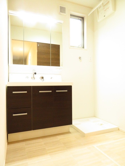 3面鏡の裏側や洗面台下など収納スペースが豊富な洗面台になっています。
