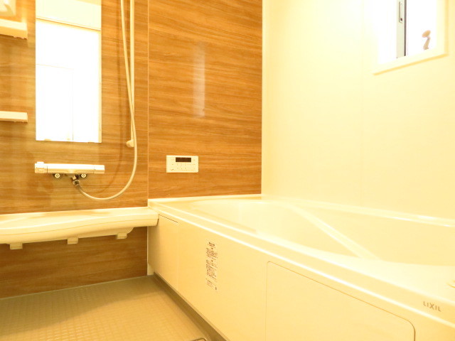 木目調の壁が落ち着いた印象を与えてくれる浴室です。